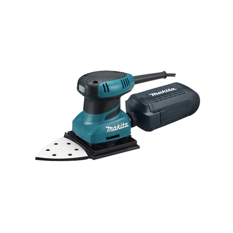 Makita BO3711 električni vibracijski brusilnik z močjo 190 W. Nima regulatorja za nastavitev števila vrtljajev. Brusna ploskev meri 93 x 185 mm.