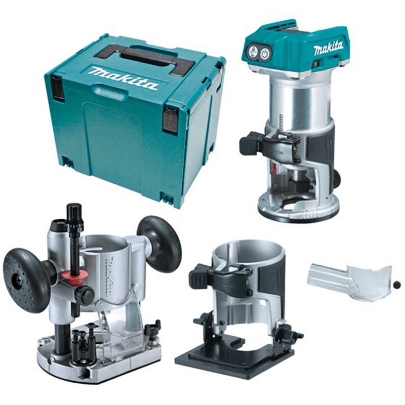 Makita DRT52Z - 18V akumulatorski enoročni rezkalnik. Vpenjalo orodja (Ø) znaša 6 mm. Število vrtljajev v prostem teku znaša do 30.000 na minuto.