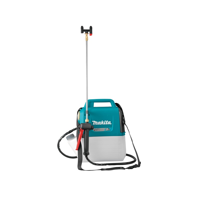 Makita DUS108Z akumulatorska škropilnica. Dvojna šoba z dvema ločeno nastavljivima glavama in dvema načinoma škropljenja (razpršeno/curek). Prostornina 10l.