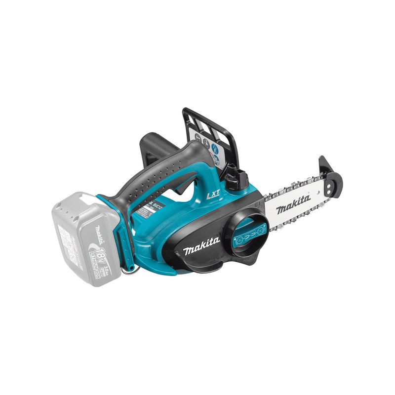 Makita DUC353Z – 18V akumulatorska verižna žaga na 2 bateriji. Dolžina meča 350 mm za zahtevnejša opravila, tudi podiranje drevja! Posebna zasnova omogoča pritrjevanje meča in verige brez orodja.