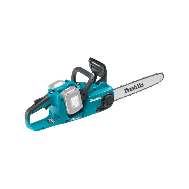 Makita DUC306Z – 18V akumulatorska verižna žaga na 2 bateriji. Dolžina meča 300 mm za zahtevnejša opravila, od drugih modelov na 2 bateriji se razlikuje po položaju baterije zadaj.