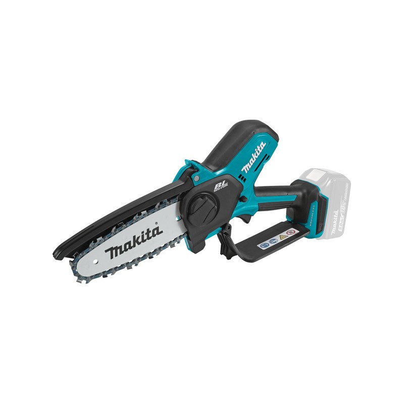 Makita UC100DZ – 12V akumulatorska verižna žaga na 1 baterijo. Dolžina meča 100 mm. Nastavitev napetosti verige brez uporabe orodja.
