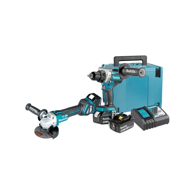 Makita DGA506RTJ akumulatorski kotni brusilnik / 2x 5,0 Ah / hitri enojni polnilec / kovček Makpac.