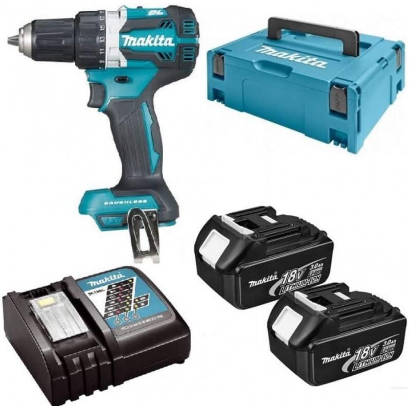 Makita DHP485RFJ - set DHP485Z, 18V akumulatorski vibracijski vrtalnik vijačnik / 2x 3,0 Ah / hitri polnilnik / kovček. 50 Nm navora, edini brezkrtačni vrtalnik z elektroniko proti pregrevanju.